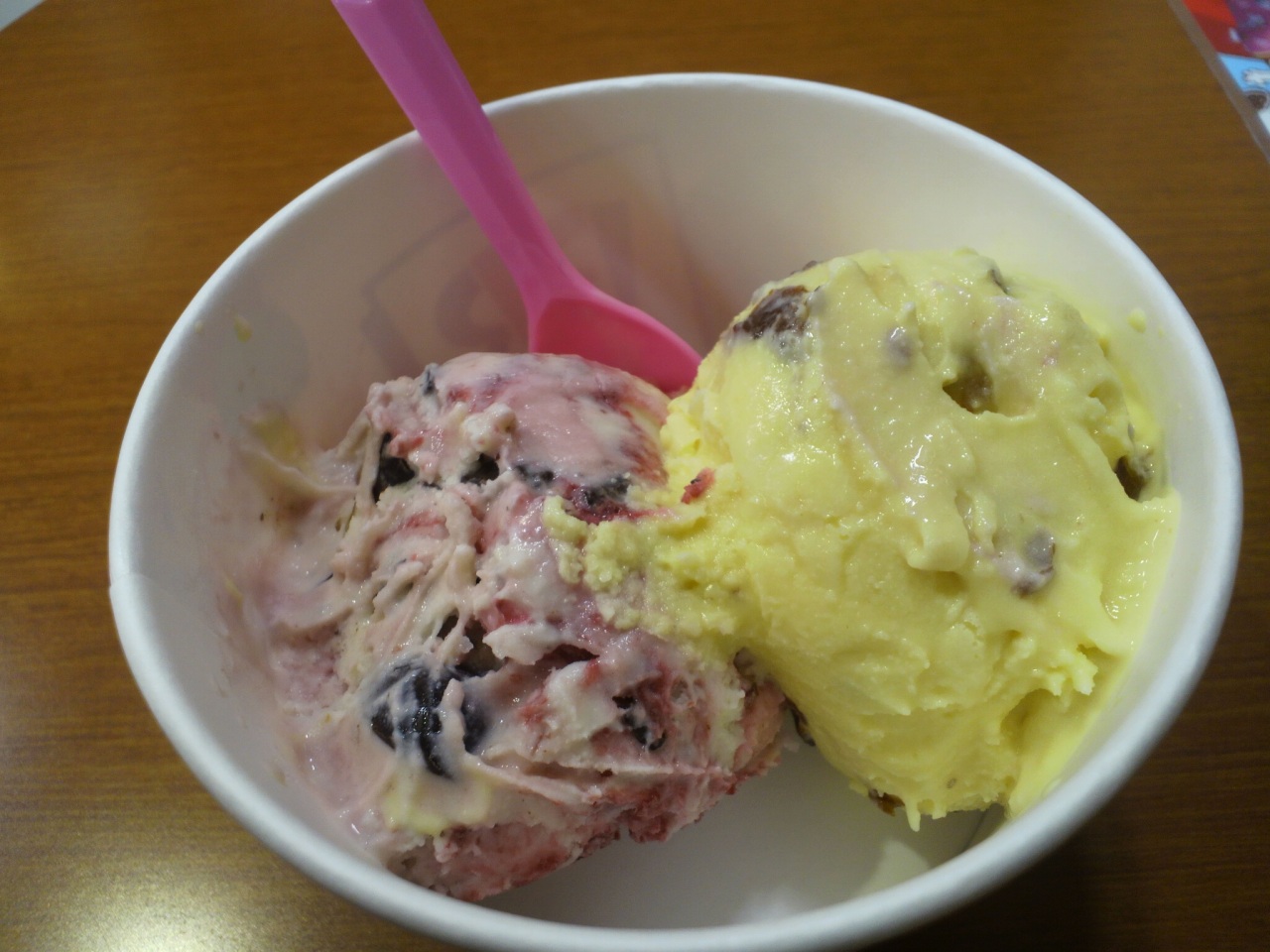 ラブポーションサーティワンとラムレーズンのスモールダブル。