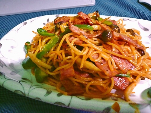ナポリタンはピーマン、玉ねぎ