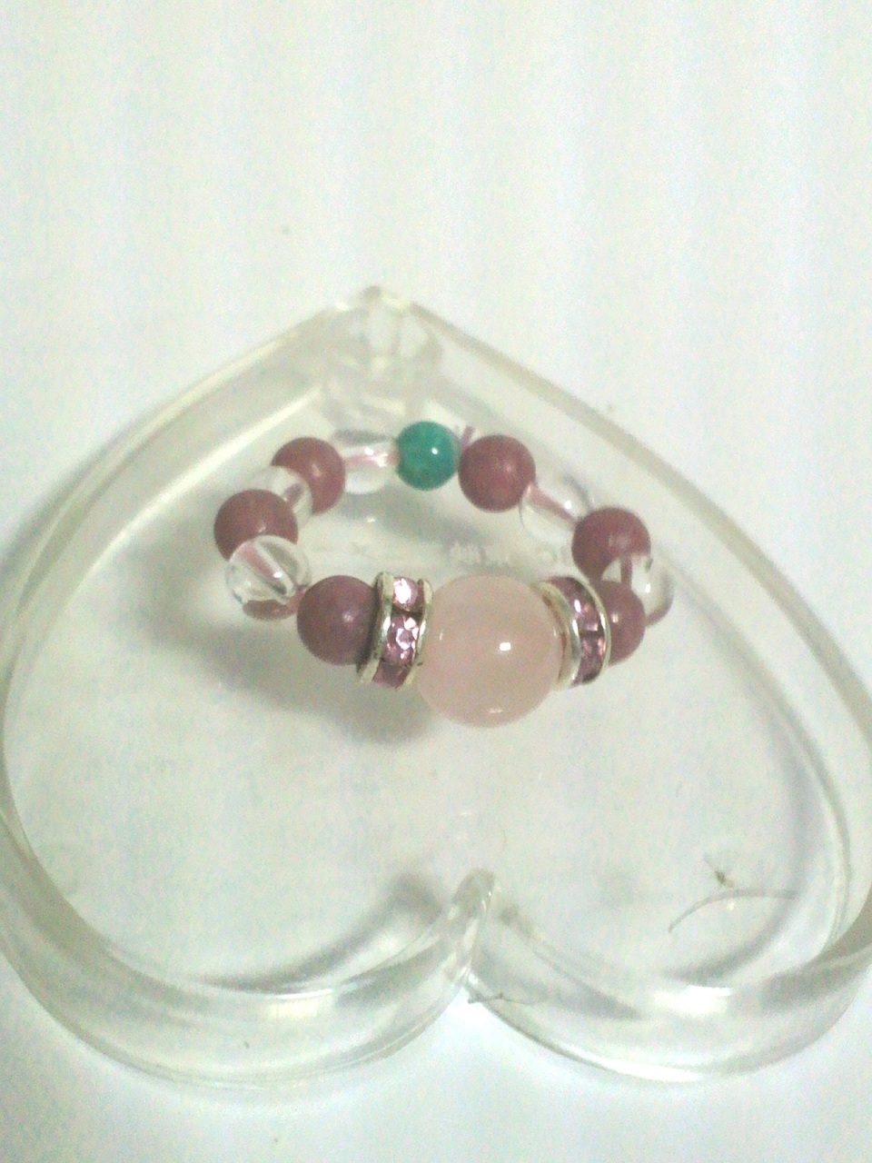 ストーンリング 今日後ろの人が視える人に視てもらいました。色々聞いて頂いてよかった!聞けて良かった!で、ストーンリングを作っていただきました。この石の色を見てもらうとお解かりいただけるのだが、ほぼ恋愛度アップの石ですwこれから毎日身につけるわ〜。