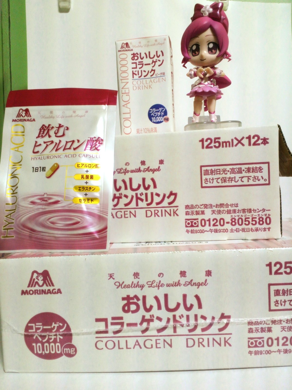 おいしいコラーゲンドリンク お肌の為に買ってしもた…。夜飲むと良いらしいよ!ヒアルロン酸はコラーゲンドリンクを1ヵ月分買ったらおまけに付いてきた。本当はお試し10本のつもりが電話でお肌のサイクルは1ヶ月くらいかかりますので1ヶ月試してみるといいと思いますって言われてつい…orzそれにヒアルロン酸もくれるっていうし…。だがこのお金あればワンコイングランデ買えたな…wまぁ、ものは試しだしね!