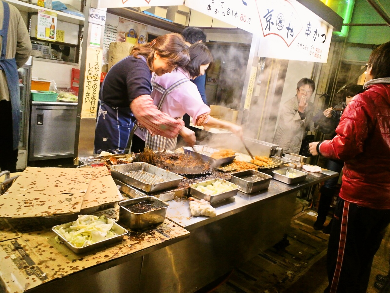 こうやって揚げている串カツをそのまま立ち食いするのも良かったんだけど、寒かったから今年は店内で食べました(*´∇`*)