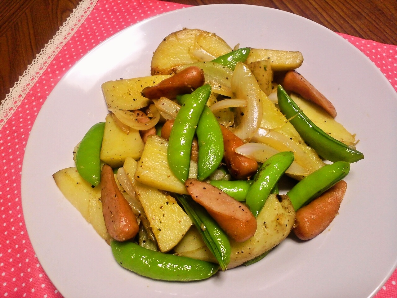 新じゃがとスナップエンドウのコンソメ炒め ウマウマでした〜(*´∇`*)詳細は追記にて。【追記】シャンブーハットさんのレシピ『新じゃがとスナップえんどうのコンソメ炒め』です。玉ねぎもプラスしてみました。エンドウがシャキシャキして美味しかったです〜(*´w`*)お弁当のおかずやおつまみにもイイネ!