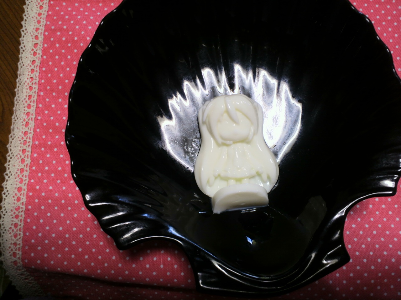 寒天牛乳で初音ミク ねんどろいどの雪ミクのオプションについてたアイストレーで作りました。これで氷を作った事があるのだけど、キレイに出来なくて断念。そこで思いついたのが寒天だ!!寒天だとこの様にキレイに取れます!!また見た目もきれい(*´w`*)