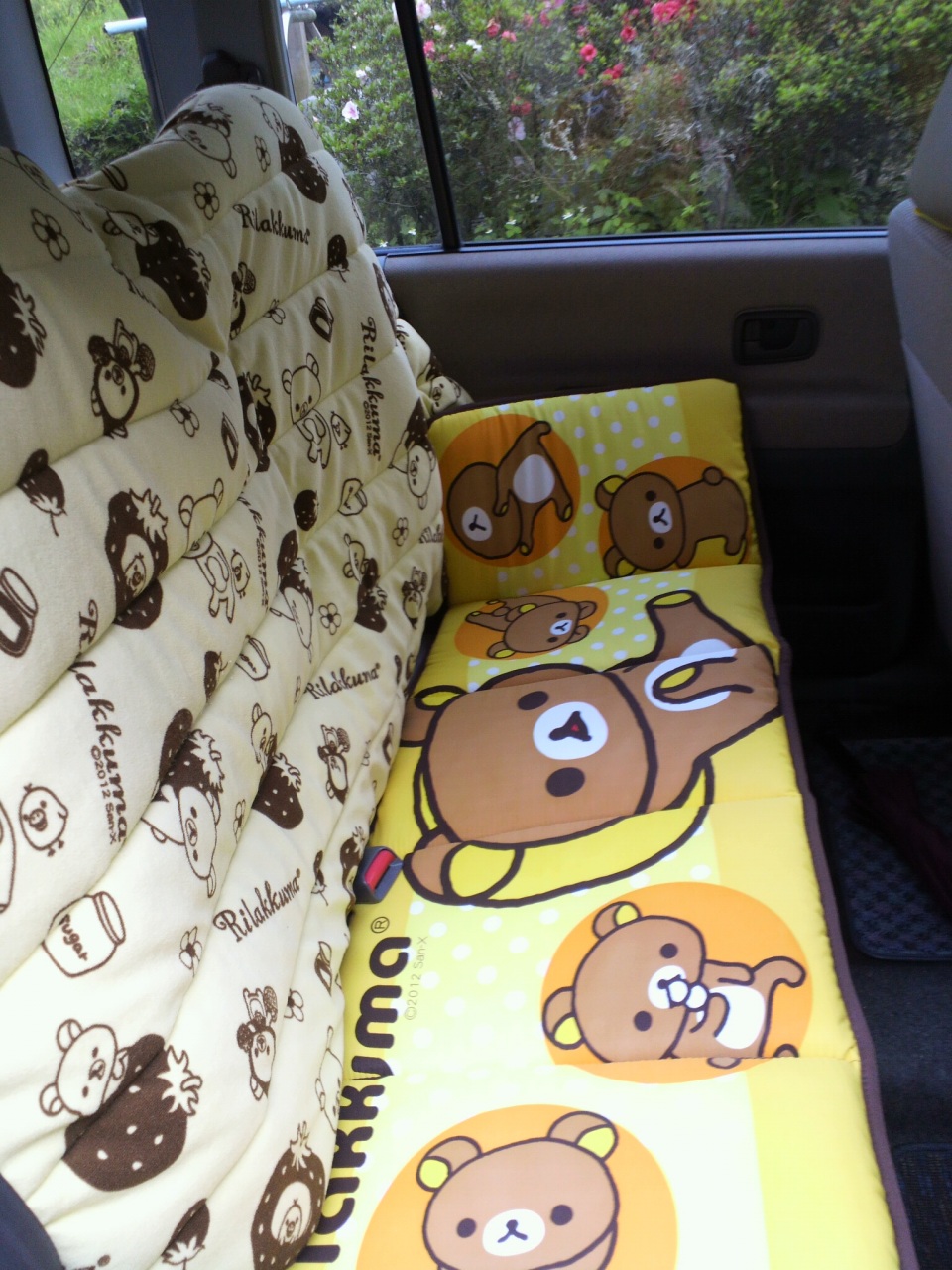 車 リラックマデコ 後部座席。この間のピンクのクッションは色が合わないから変えた。あのピンクのやつはふかふかだから下に敷いてもいいかも。でも絵柄が見えなくなっちゃうのがもったいないかなー。因みにこのリラックマのグッズは全てしまむらにて購入したwあそこ何気にリラックマの宝庫だな!!wこれで総額6千円くらいかな。が、まだまだ!この他に楽天でカーグッズを注文してある!!なんか思い立ってリラックマデコやってしまって予想外に出費したので今月は財布の紐締めにゃ!!