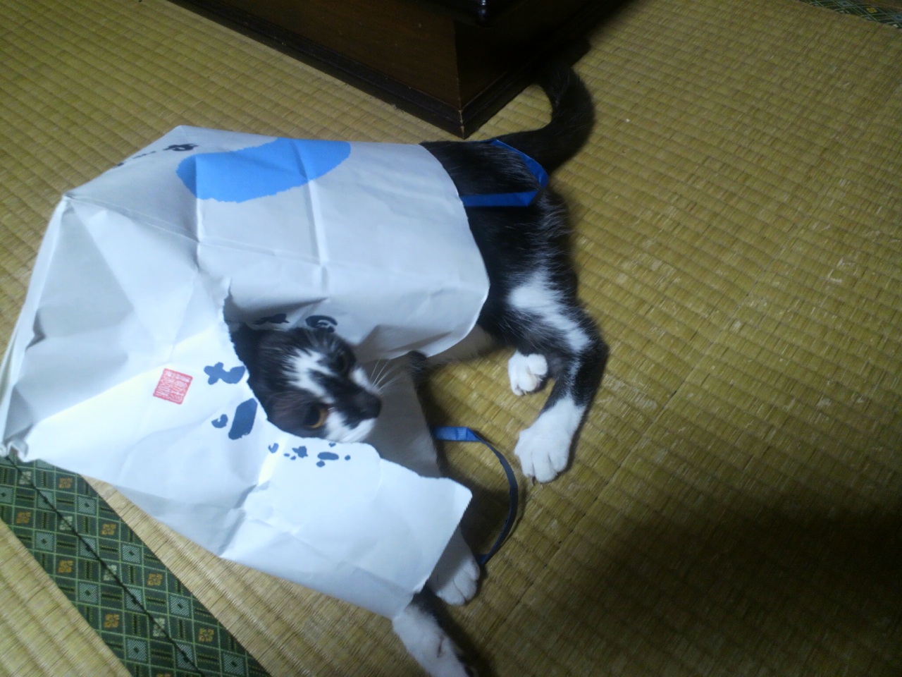 お土産の入った袋が気に入ったようだ(・ω・)